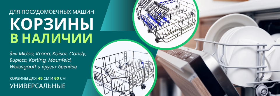 Корзины для посудомоечных машин Midea, Krona, Kaiser и др. в наличии.Доставка запчастей по всей России.Подписывайтесь на наш телеграмм https://t.me/itagroupruАкция!!! Юр.лицам СКИДКА -20%